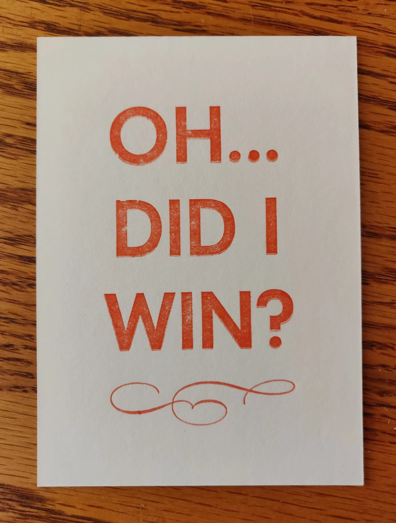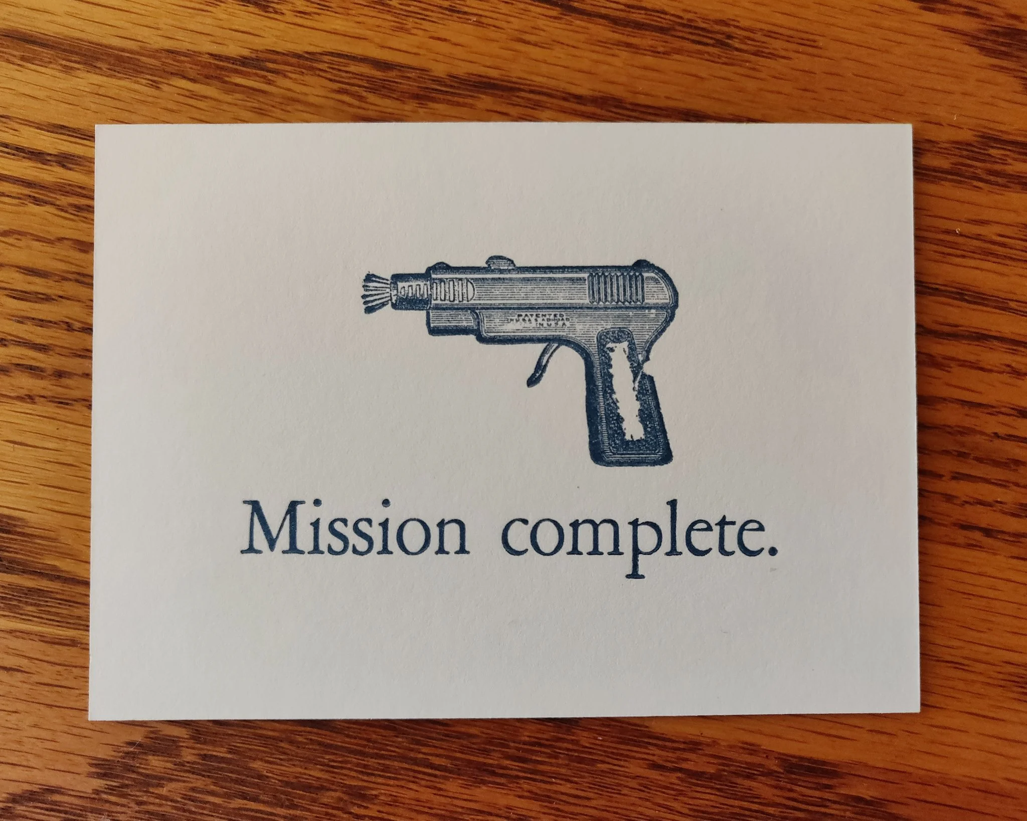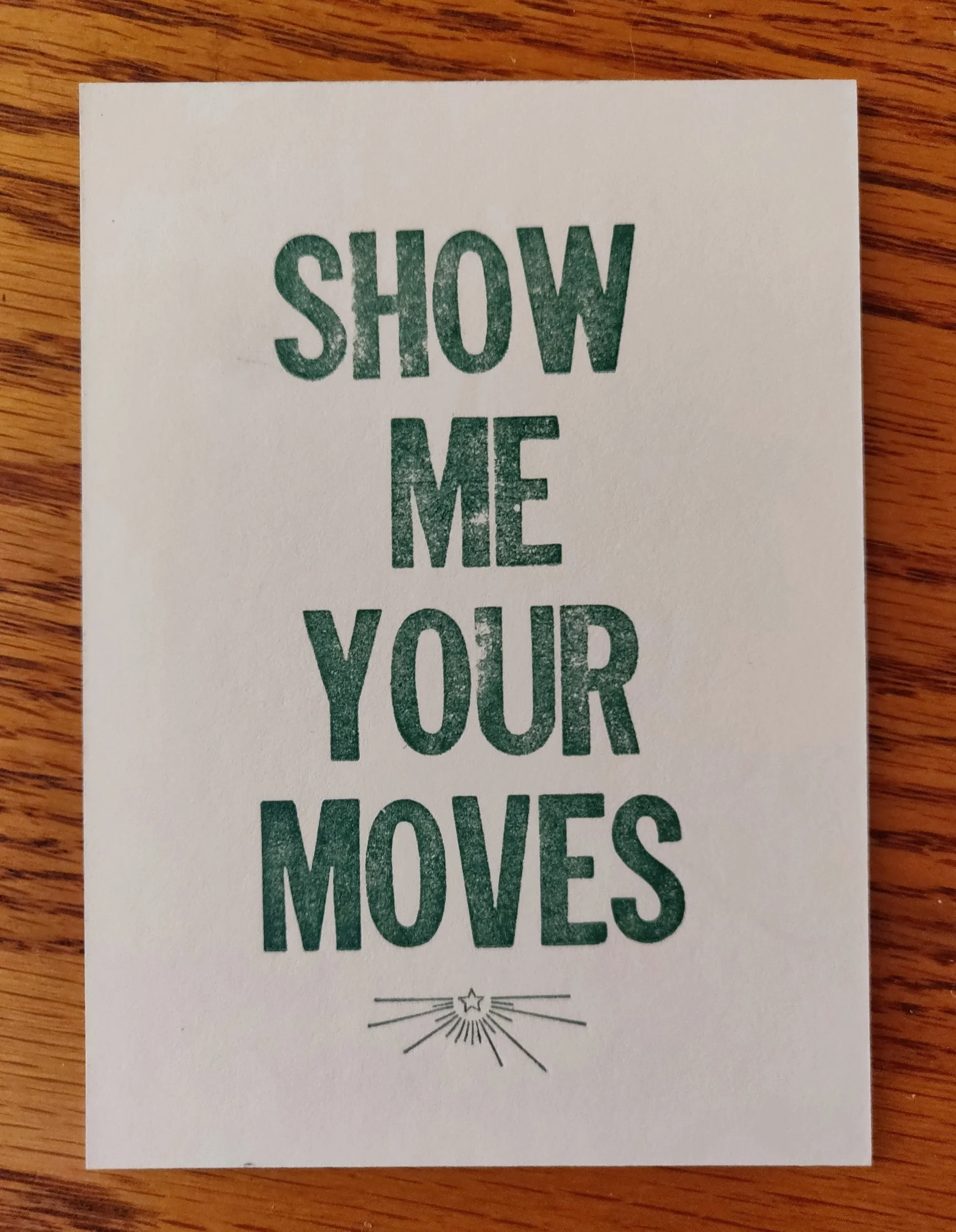Printed on an antique manual platen press at Print St. Pete on Boxcar Press card stock.